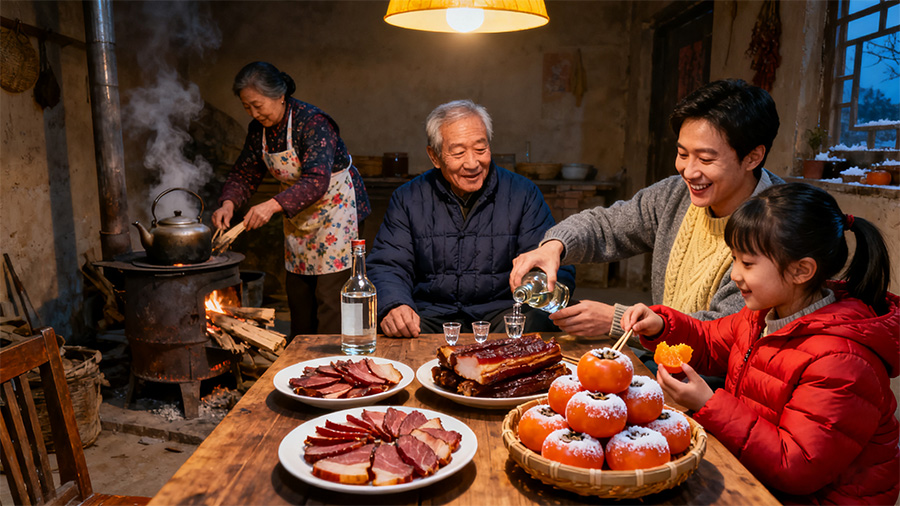 霜尖儿踮着脚,吻过高阳堂的檐角树叶卷着秋的余温,落在酒坛的褶皱里酒液晃着琥珀光,把霜降的清寒酿成软暖