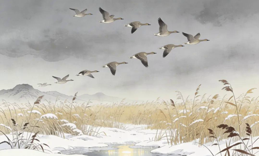 - 一候雁北乡:大雁开始感知到春天的气息,准备向北迁徙
